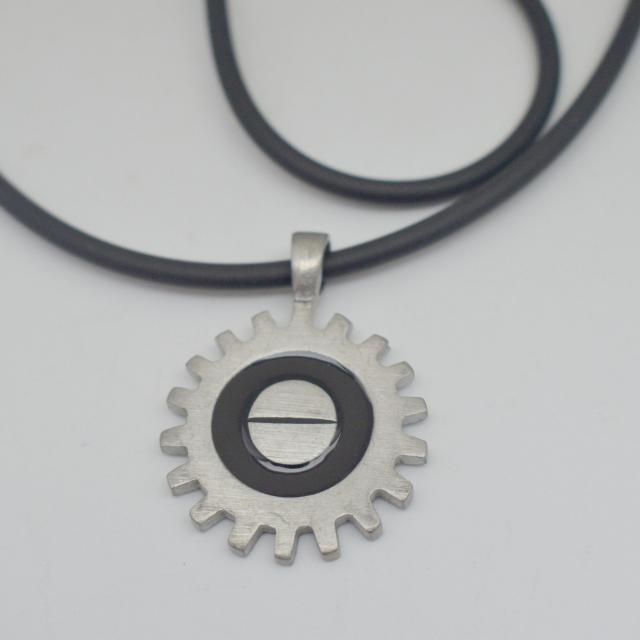 DescriptionThis necklace is made with a cool pewter mechanical gear pendant. It is attached to a heavy duty 19 inch black cord necklace. The gear pendant measures 1 x 1.25 inches. Great gift for the mechanic, auto mechanic or gear head!