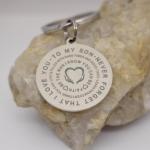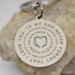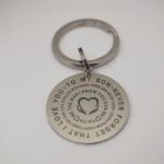 DescriptionThis is a keychain is made with a heavy-duty stainless steel pendant. The inscription on the keychain is, "TO MY SON. NEVER FORGET THAT I LOVE YOU. LIFE IS FILLED WITH HARD TIMES AND GOOD TIMES.LEARN FROM EVERYTHING YOU CAN.BE THE MAN I KNOW YOU CAN BE. FAITH. It measures 1 1/8 inch and has a matte finish. It is attached to a heavy duty 28mm stainless steel keychain.Great gift for your son.KC8-for seller's reference.